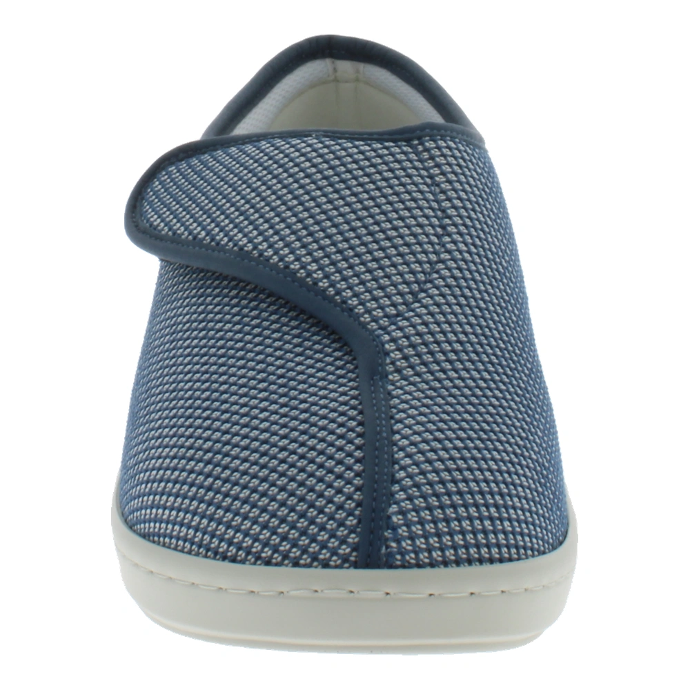 Le BR 3214 L bleu marine de Bruman est un chausson extensible conçu pour le confort et la sécurité des pieds sensibles. Sa large ouverture et sa fermeture auto-agrippante à l’avant permettent un chaussage facile et un ajustement précis, même en cas de hallux valgus, de polyarthrite ou de diabète. Sans couture interne et doté d’un contrefort arrière, il assure un bon maintien tout en évitant les frottements. Sa semelle arrondie et antidérapante prévient les risques de chute. Idéal en intérieur ou en établissement médicalisé.