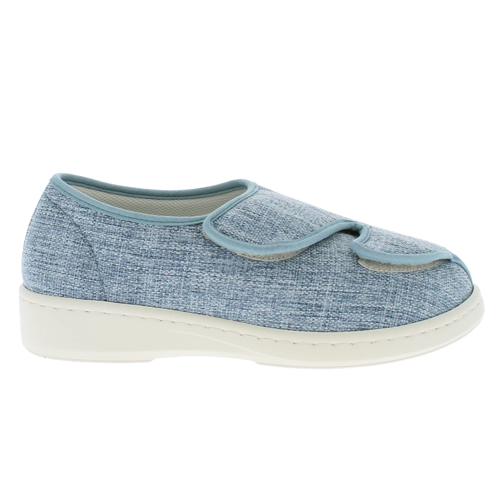Ce chausson orthopédique pour femme est disponible en couleur bleu ciel et de la pointure 35 à 42.