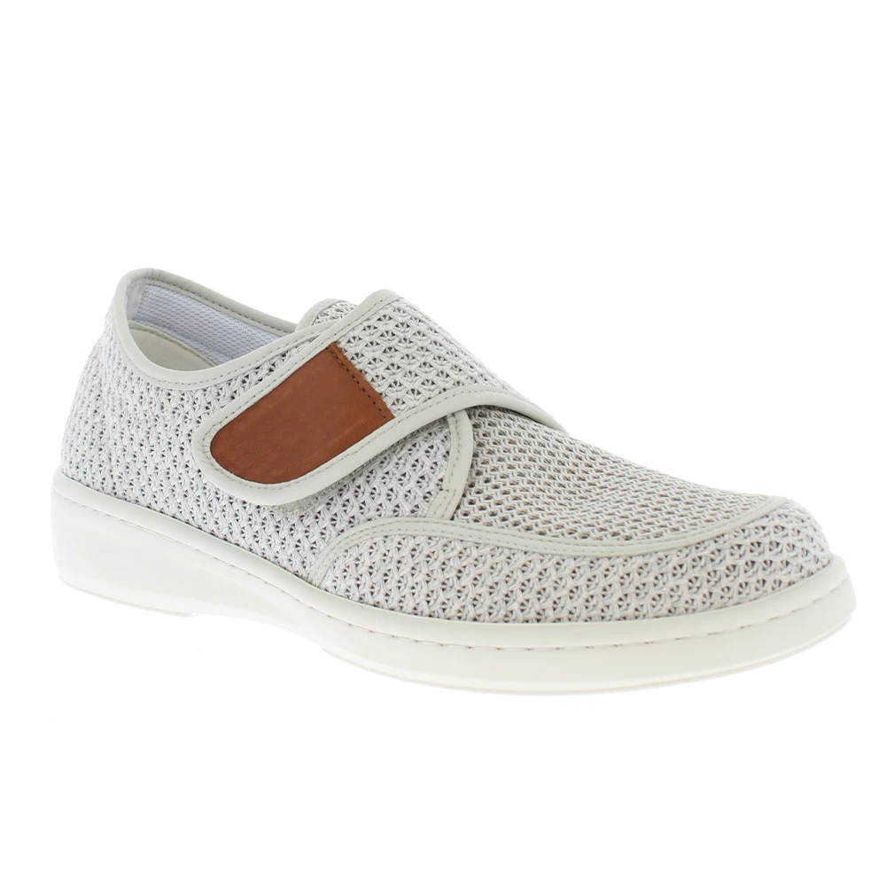 Cette chaussure orthopédique pour homme est disponible en couleur beige et de la pointure 39 à 46.