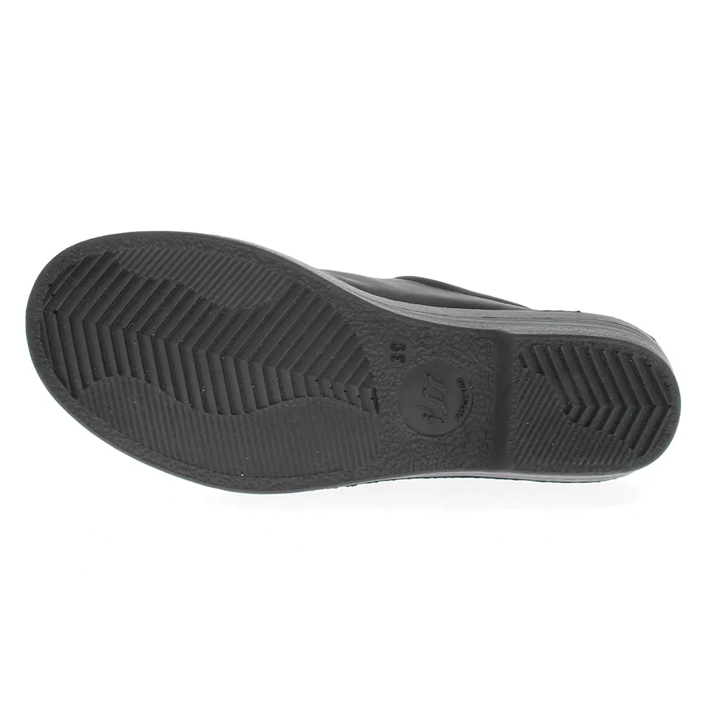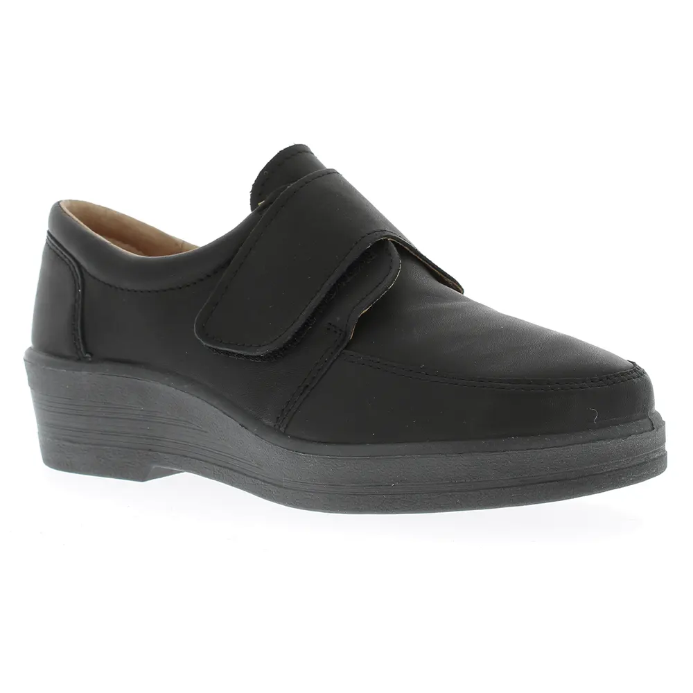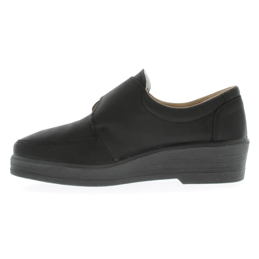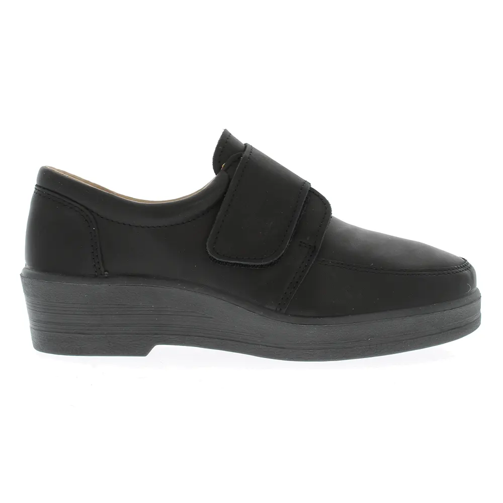 Chaussures en cuir pour femme avec fermeture Velcro. La semelle et le talon sont compensés. Les chaussures Ola sont des chaussures de haute qualité pour les femmes qui ont besoin de chaussures confortables pour un usage quotidien.