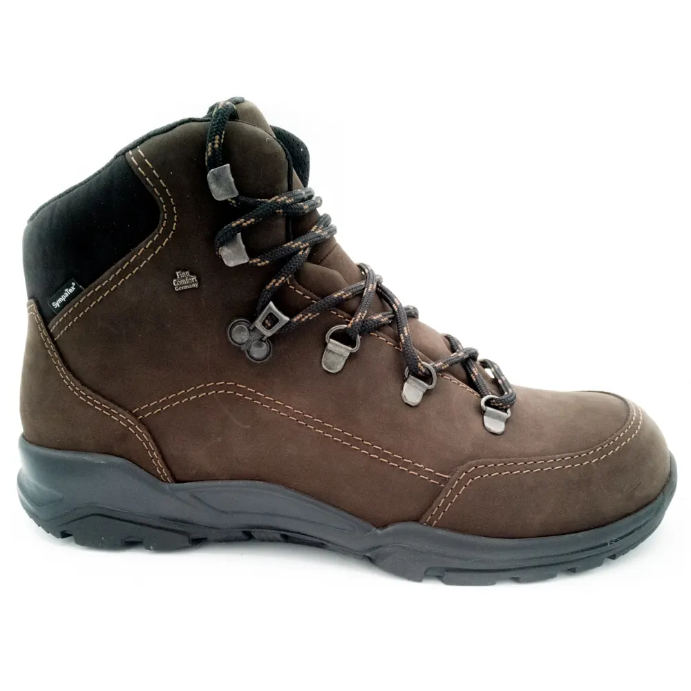 La chaussure confortable de randonnée montante Tibet de Finn Comfort est imperméable et respirante grâce à son cuir et sa membrane Sympatex. La tige montante permet une meilleure stabilité et protège les chevilles en cas de chocs. C’est la chaussure idéale pour les personnes avec des pieds forts souhaitant pratiquer la randonnée dans le plus grand confort.