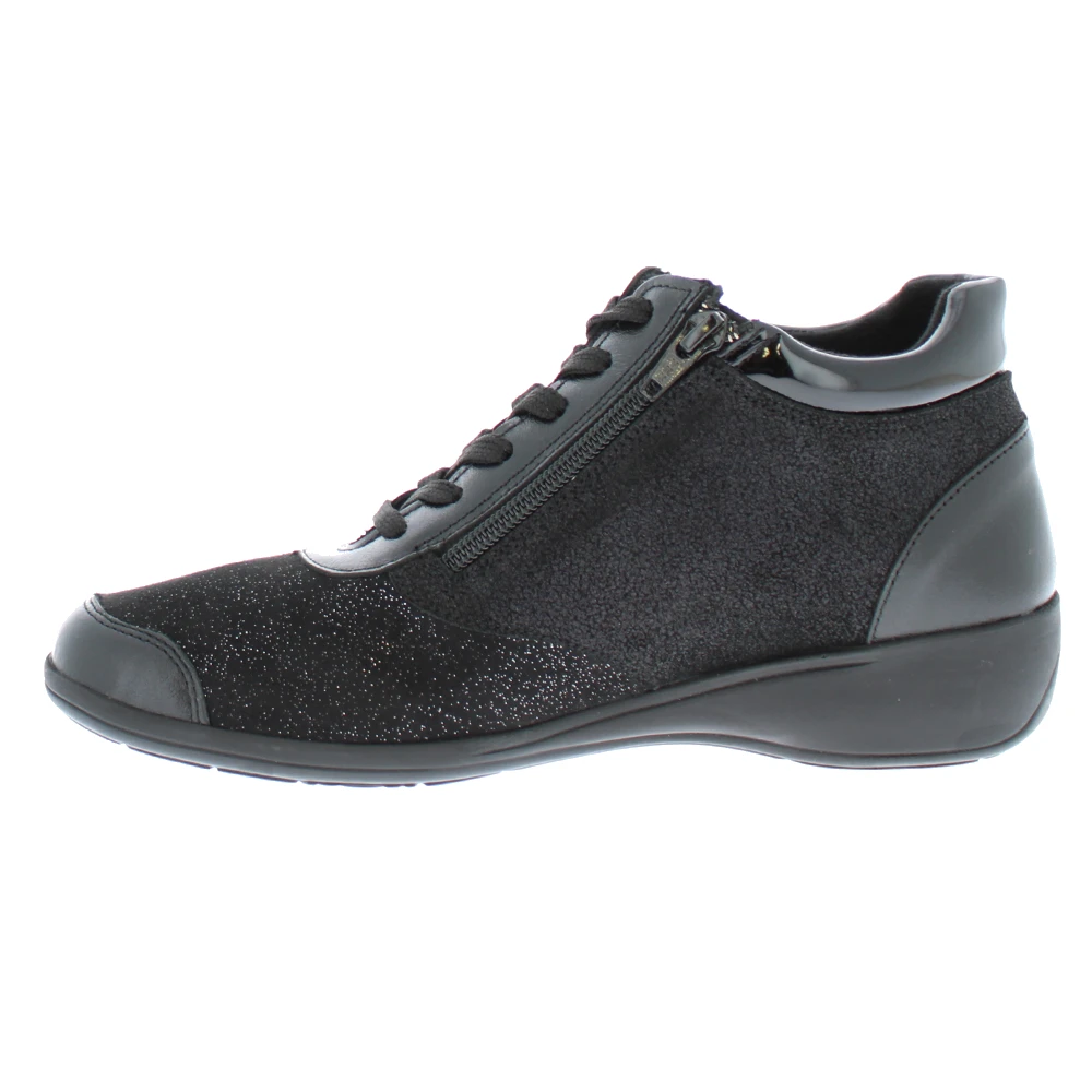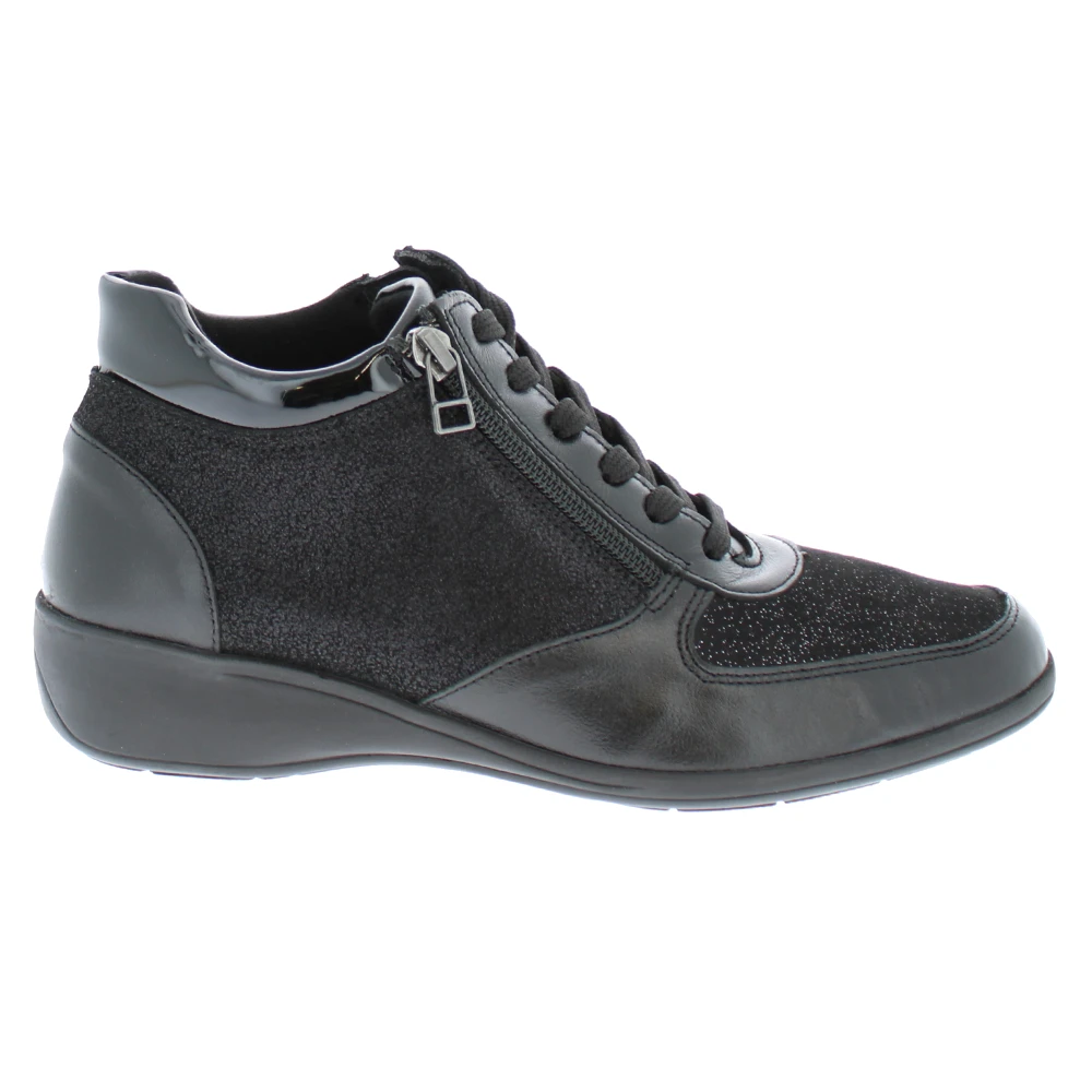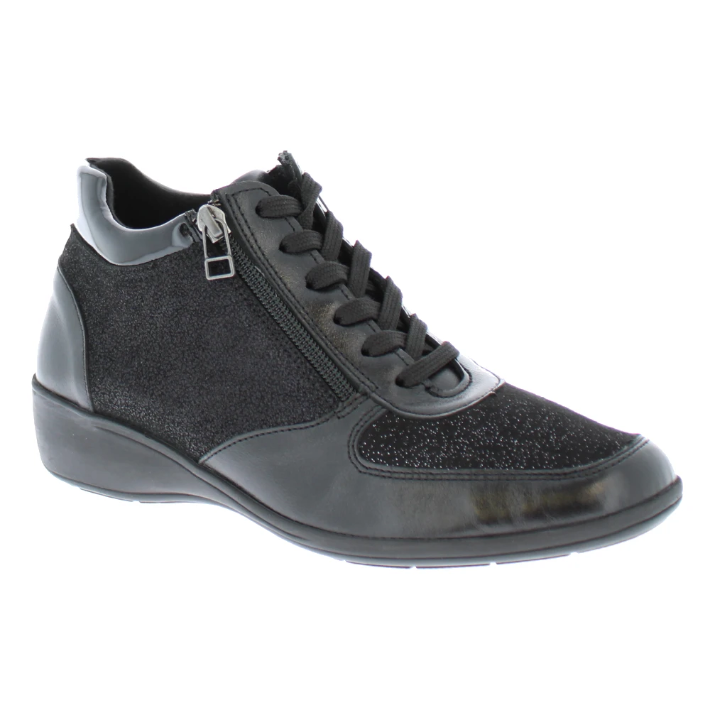 Cette chaussure orthopédique pour femme est disponible en couleur noir et de la pointure 36 à 41.