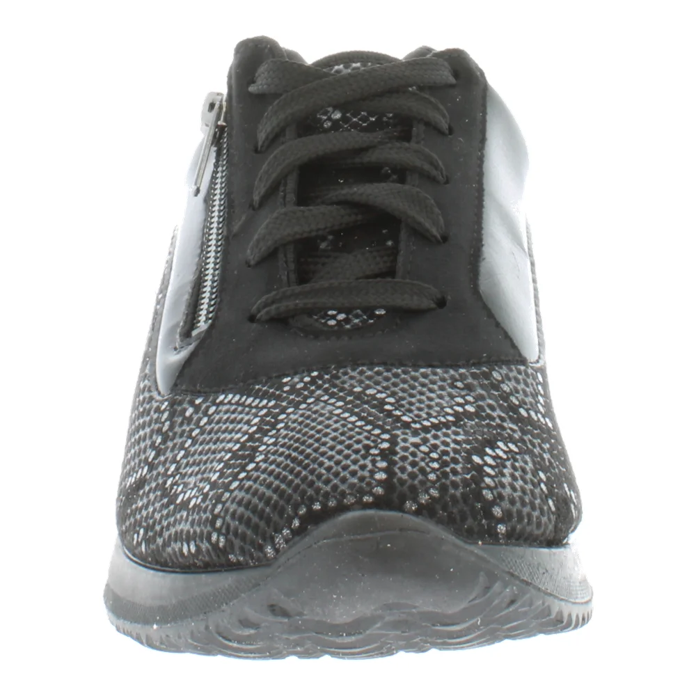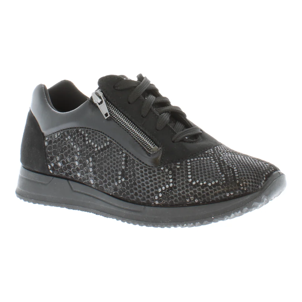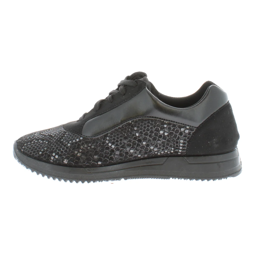Cette chaussure confort pour femme est disponible en couleur noir et de la pointure 35 à 42.