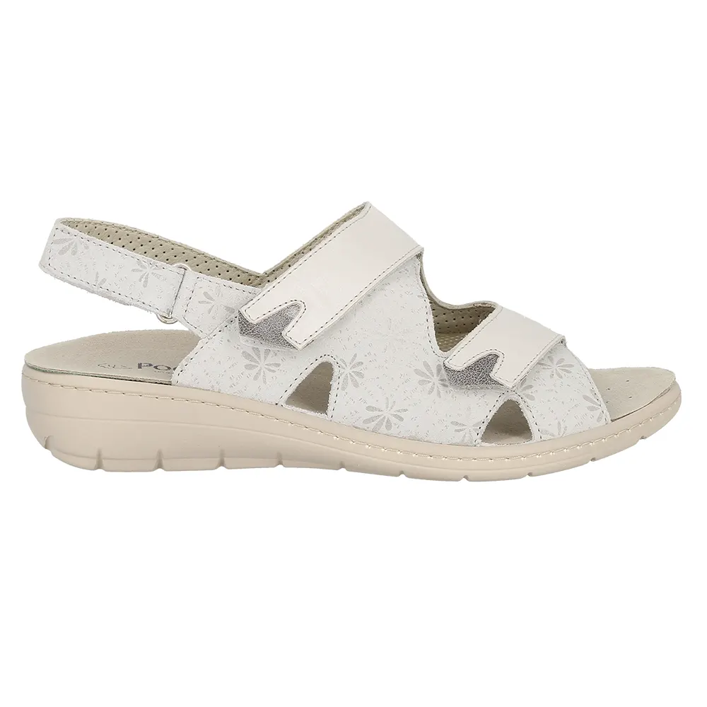 Cette sandale Gina en cuir trĂšs fĂ©minine en couleur ivoire et convient aux personnes prĂ©sentant un hallux valgus grĂące Ă sa partie extensible et peut s’adapter aux personnes souffrant d’Ă©pine calcanĂ©enne. Elle s’ajuste parfaitement grĂące Ă trois brides rĂ©glables qui assurent un excellent maintien du pied. La semelle intĂ©rieure en microfibre anti-transpirante est montĂ©e sur une mousse de confort pour une marche agrĂ©able et sĂ©curisĂ©e par une semelle stable et anti-dĂ©rapante.