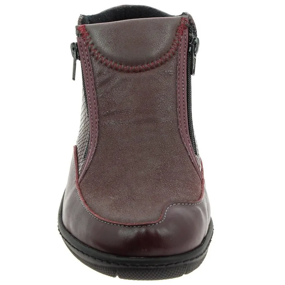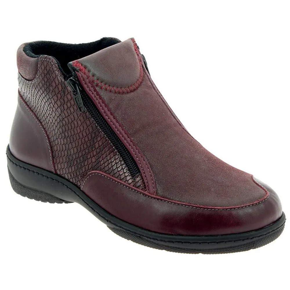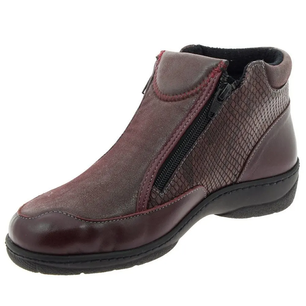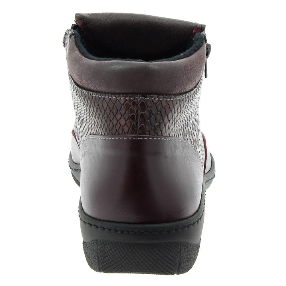 Cette chaussure orthopédique pour femme est disponible en couleur bordeaux et de la pointure 36 à 42.