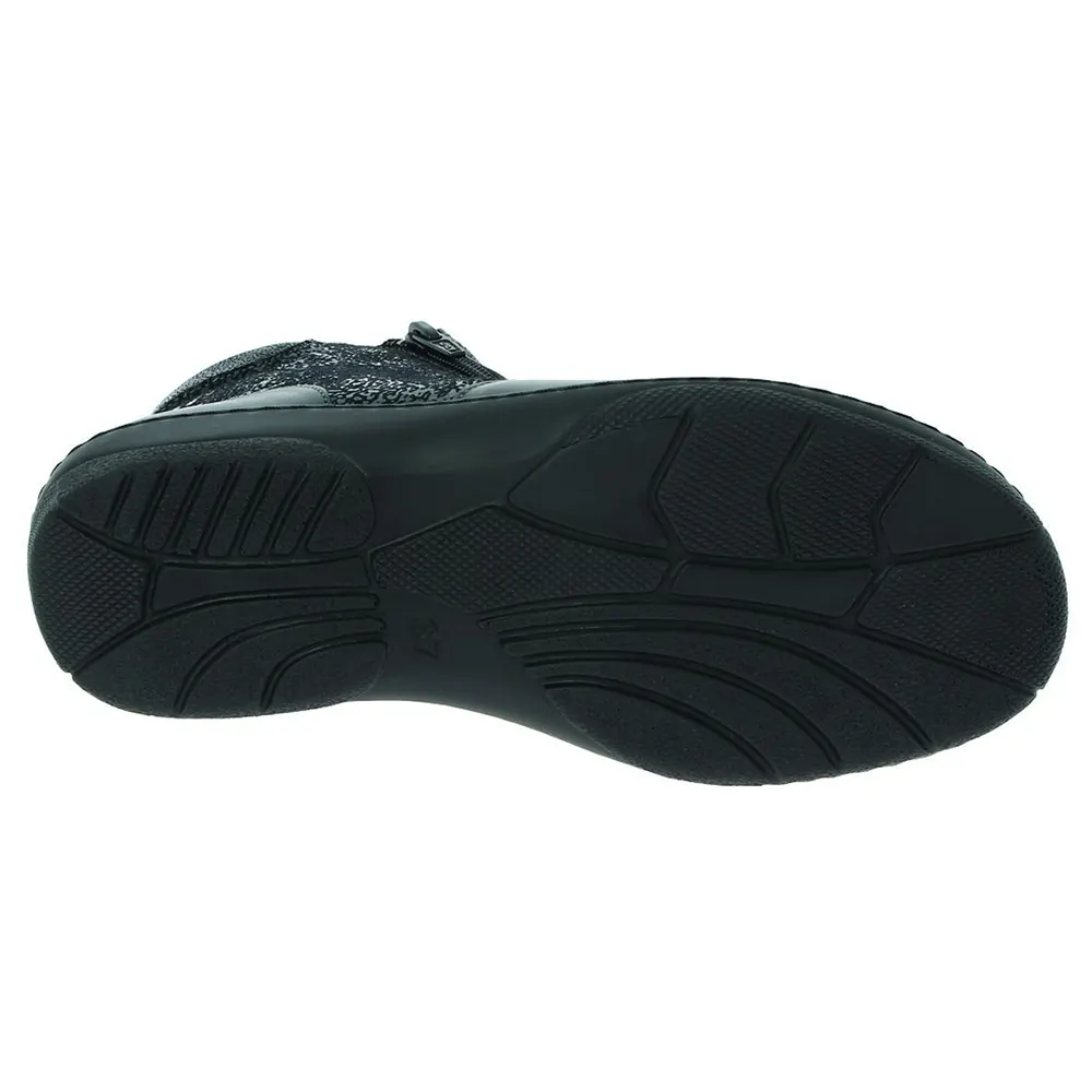 Cette bottine fĂ©minine et moderne est composĂ©e de cuir souple et de tissu extensible, alliant ainsi confort et protection du pied. La doublure polaire offre un confort agrĂ©able et chaleureux. Cette chaussure s’enfile facilement grĂące Ă une double fermeture Ă glissiĂšre. Une premiĂšre amovible avec traitement anti-bactĂ©rien peut ĂȘtre remplacĂ©e par une semelle sur mesure. La semelle antidĂ©rapante et non bloquante permet de marcher en toute sĂ©curitĂ©.