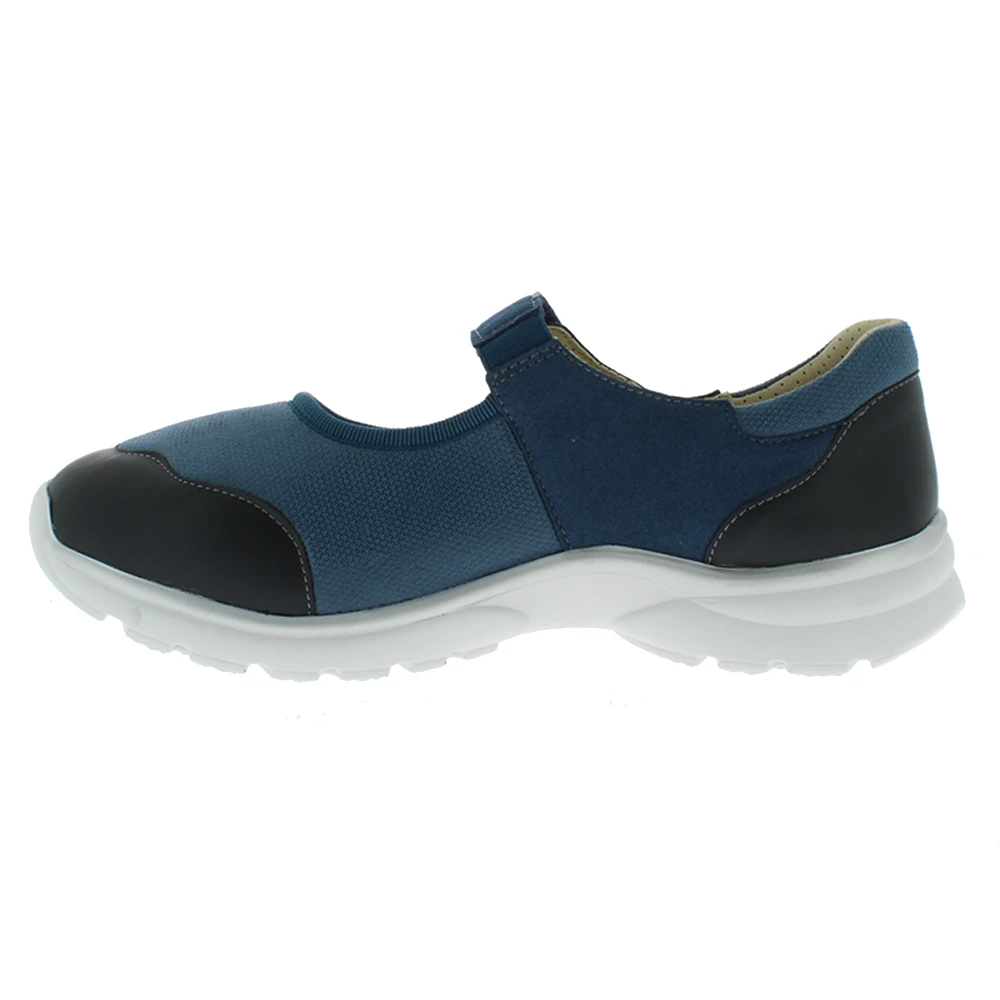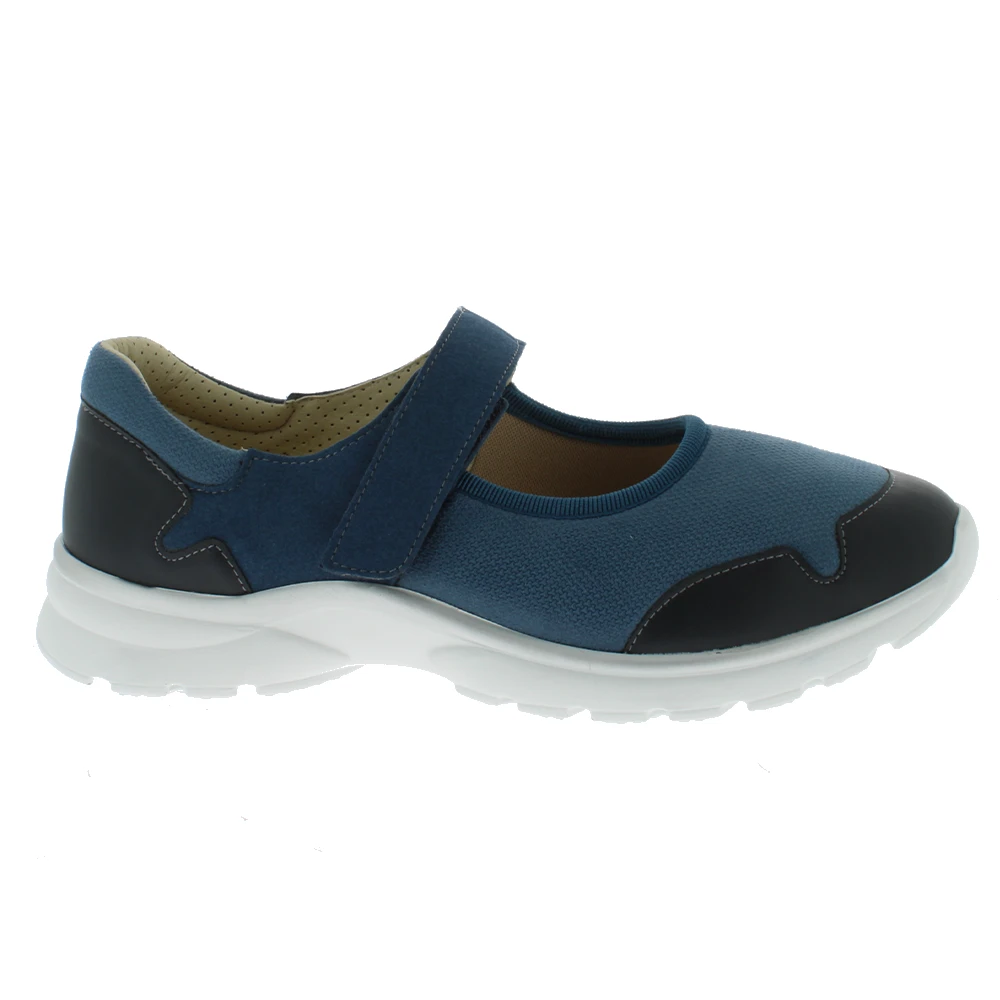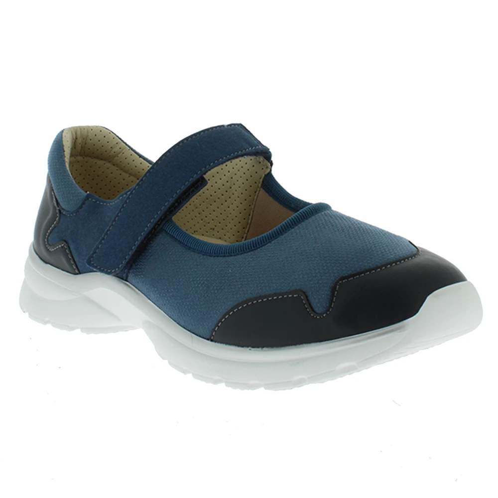 La chaussure de détente Podowell Melba bleu est idéale pour accompagner vos sorties extérieures avec confort et sécurité. Grâce à sa semelle extérieure légère et adhérente, elle assure une stabilité sur tous types de surfaces. Son ouverture large et sa bride auto-agrippante, dotée d’un élastique pour éviter toute compression, offrent un ajustement précis et confortable, même en cas de chevilles gonflées. Le col matelassé et la bordure élastiquée au niveau du cou-de-pied garantissent un contact doux avec la peau. La chaussure protège efficacement les extrémités grâce à son cuir souple à l’avant et au talon. Elle est également adaptée aux personnes souffrant d’hallux valgus, grâce à son tissu extensible sur les côtés. Sa doublure intérieure, respirante et antimicrobienne, assure un environnement sain tout au long de la journée.
