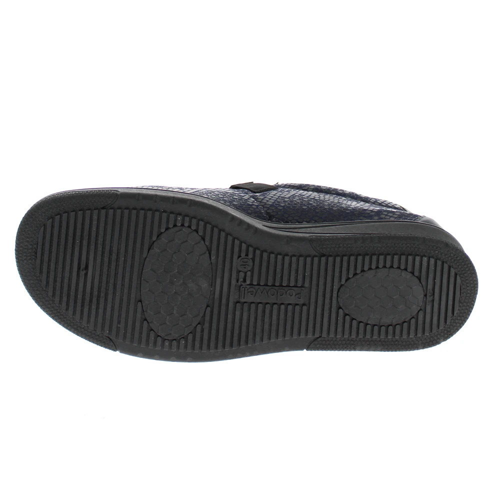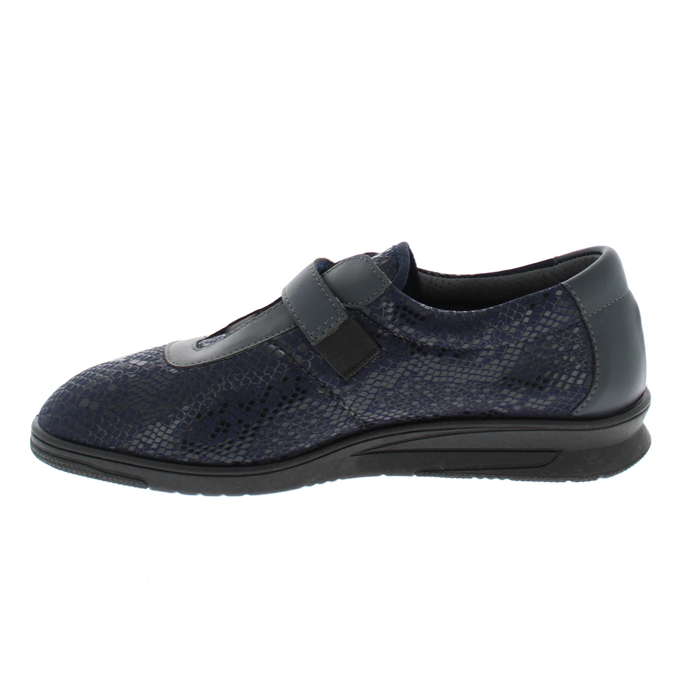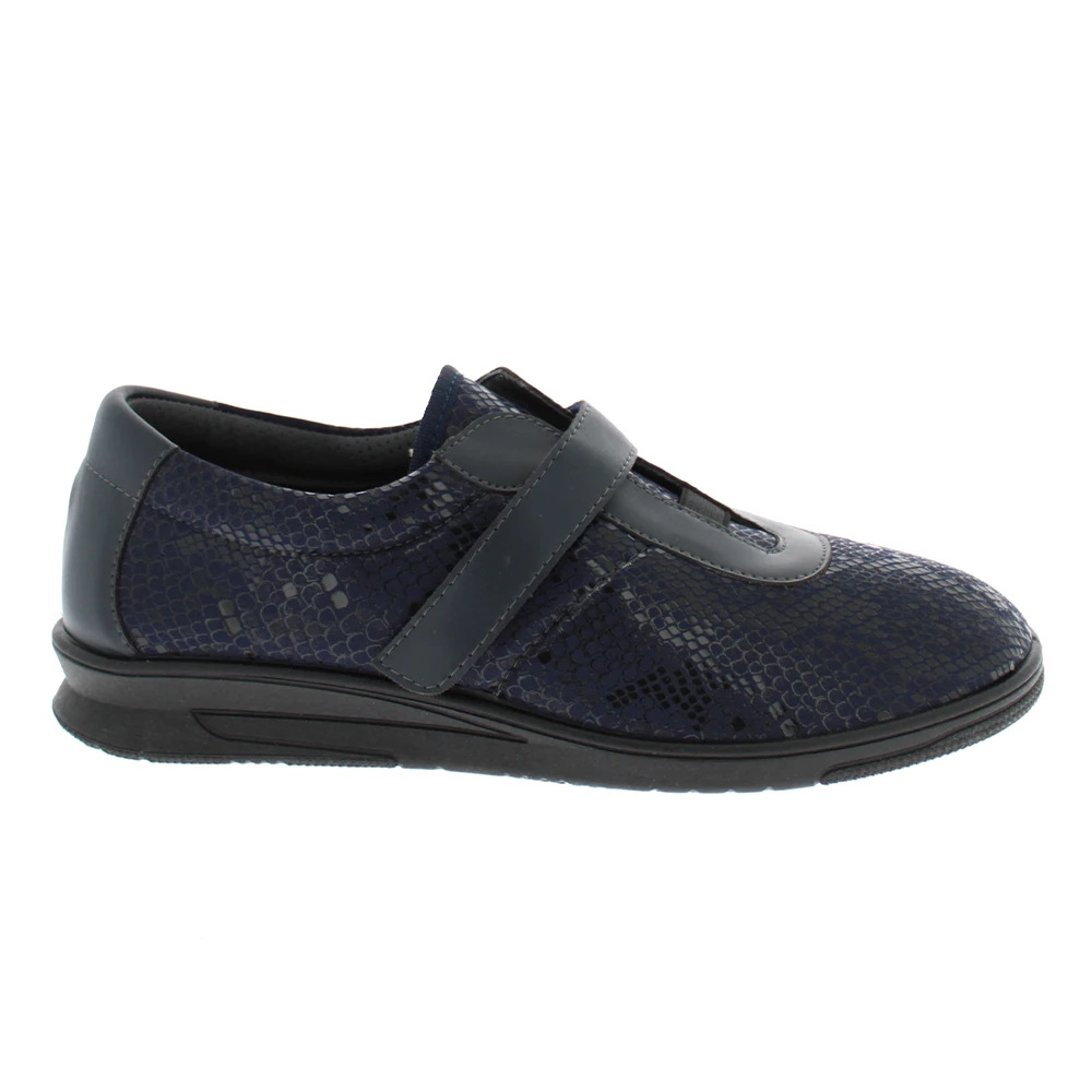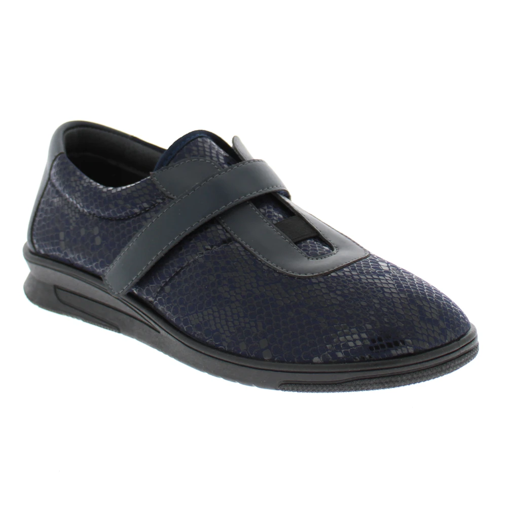Cette chaussure orthopédique pour femme est disponible en couleur marine et de la pointure 36 à 42.