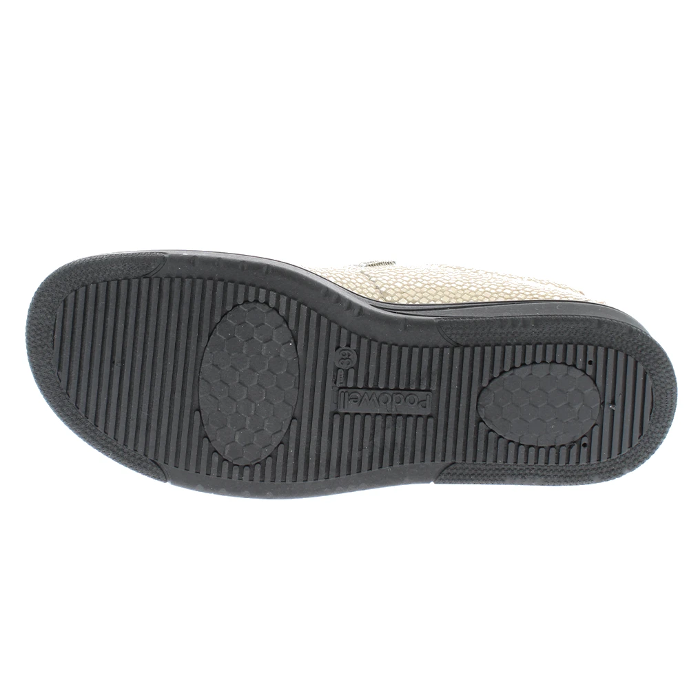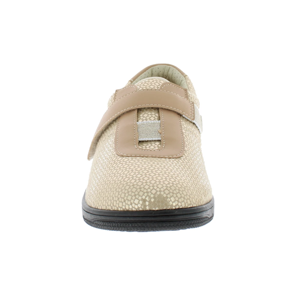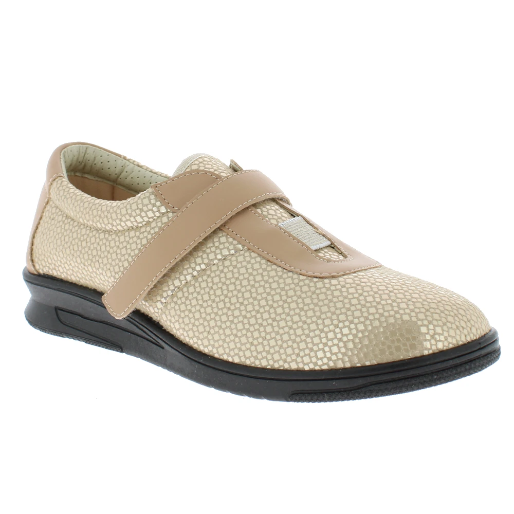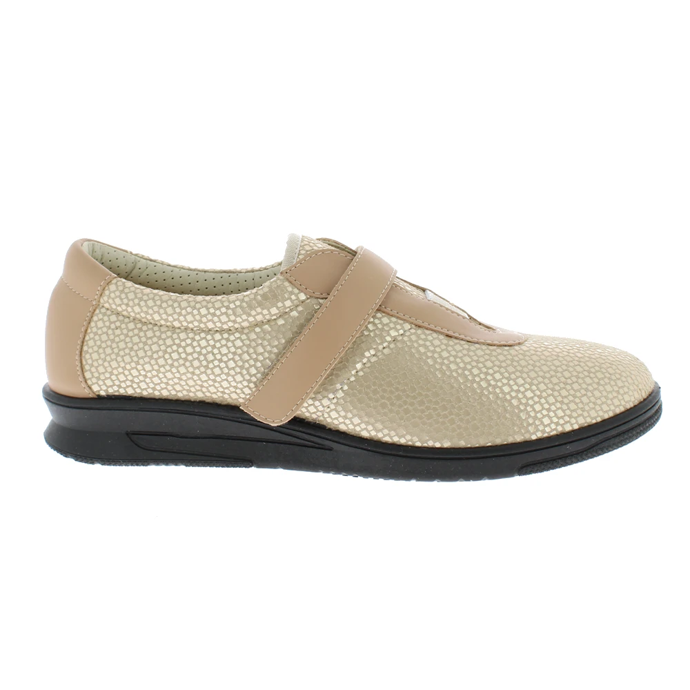 Cette chaussure orthopédique pour femme est disponible en couleur or et de la pointure 36 à 42.