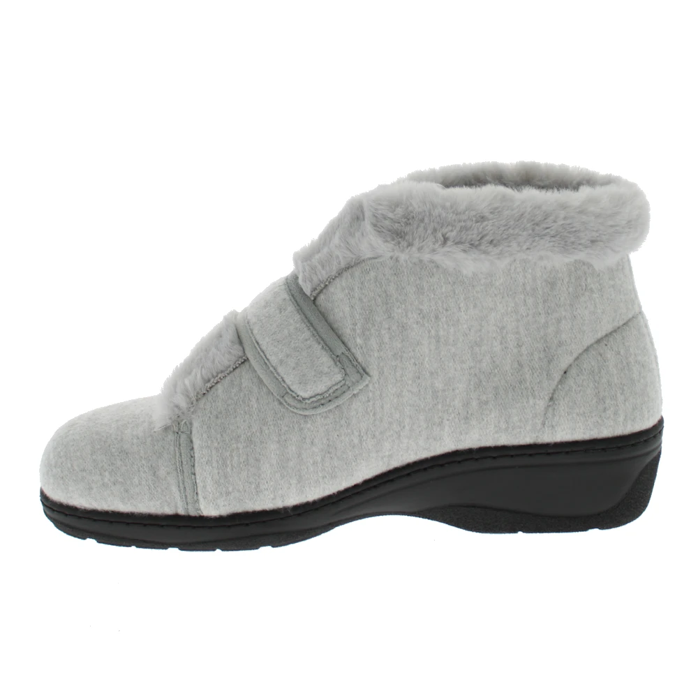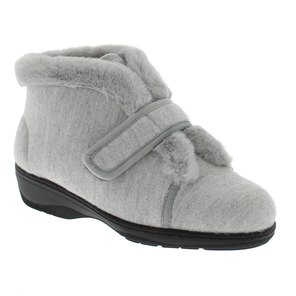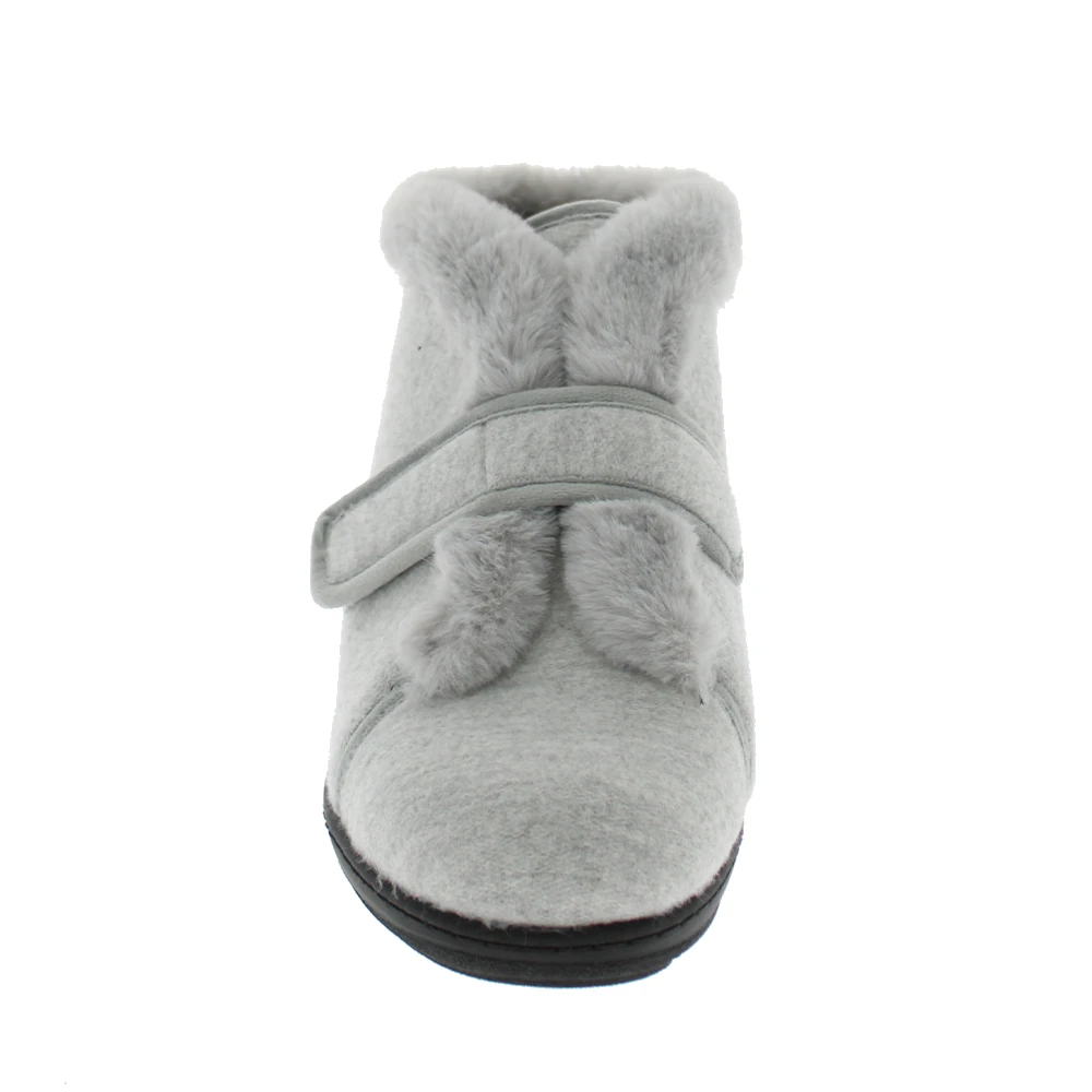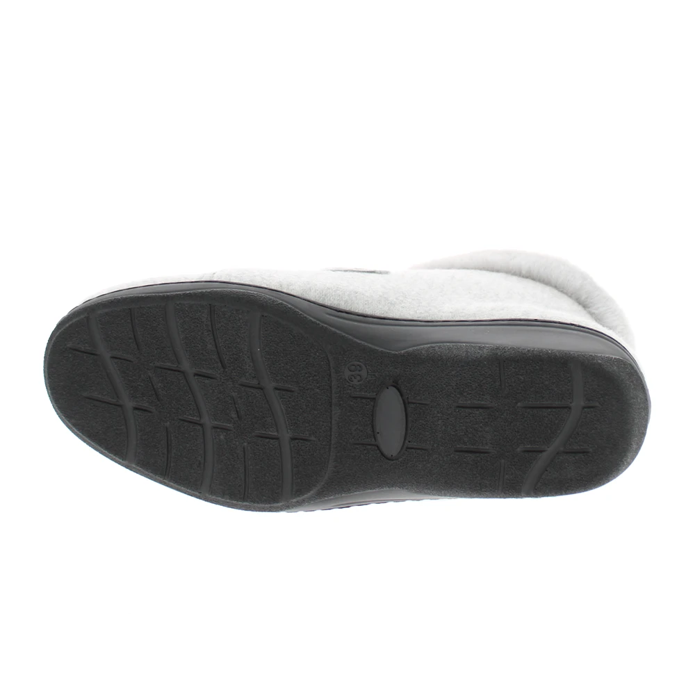 Ce chausson orthopédique pour femme est disponible en couleur gris et de la pointure 35 à 42.