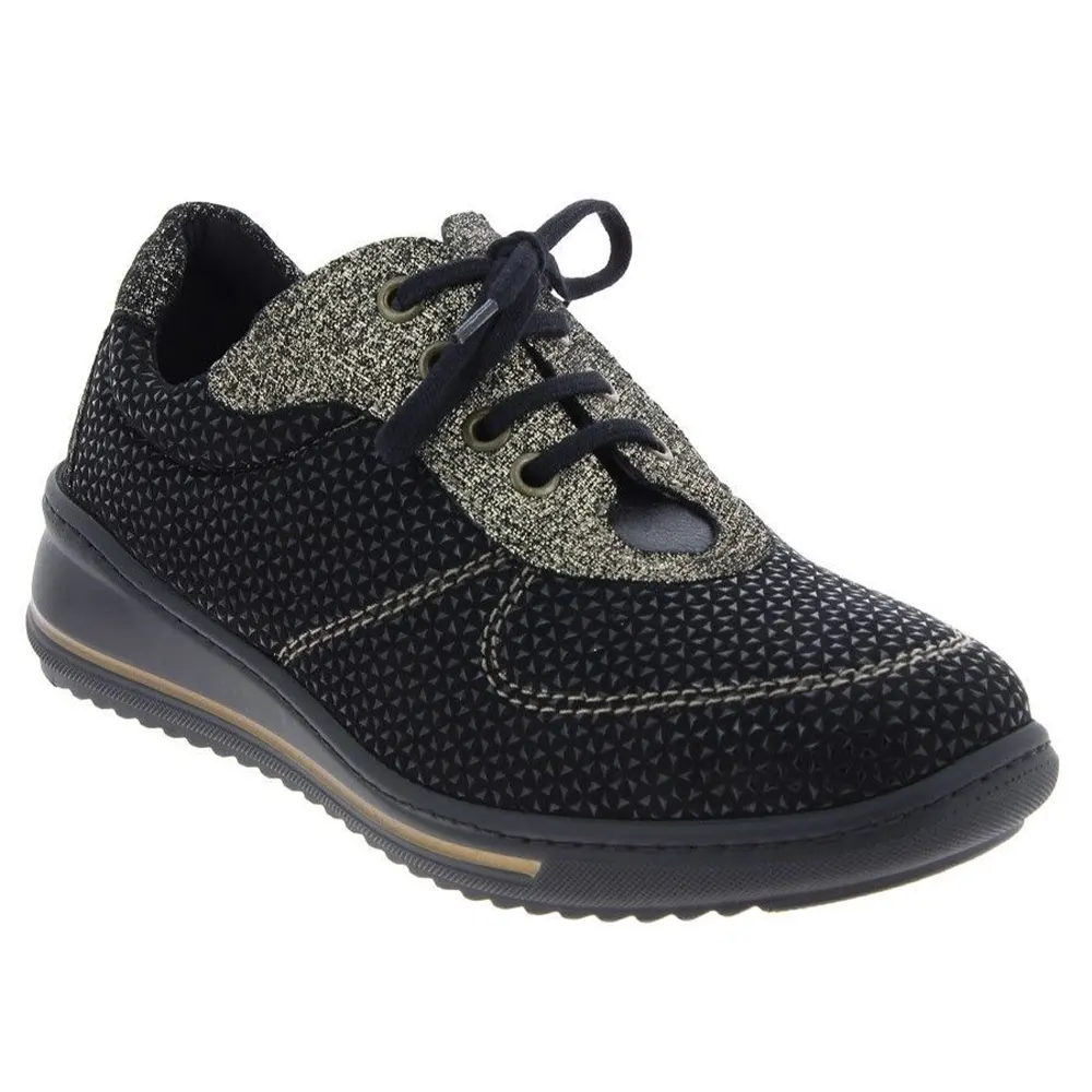 Cette chaussure orthopédique pour femme est disponible en couleur noir et de la pointure 35 à 42.