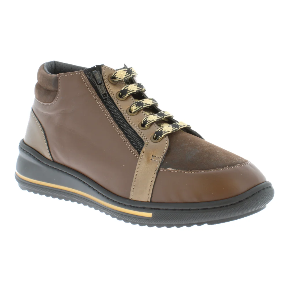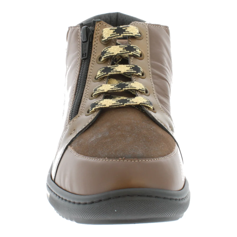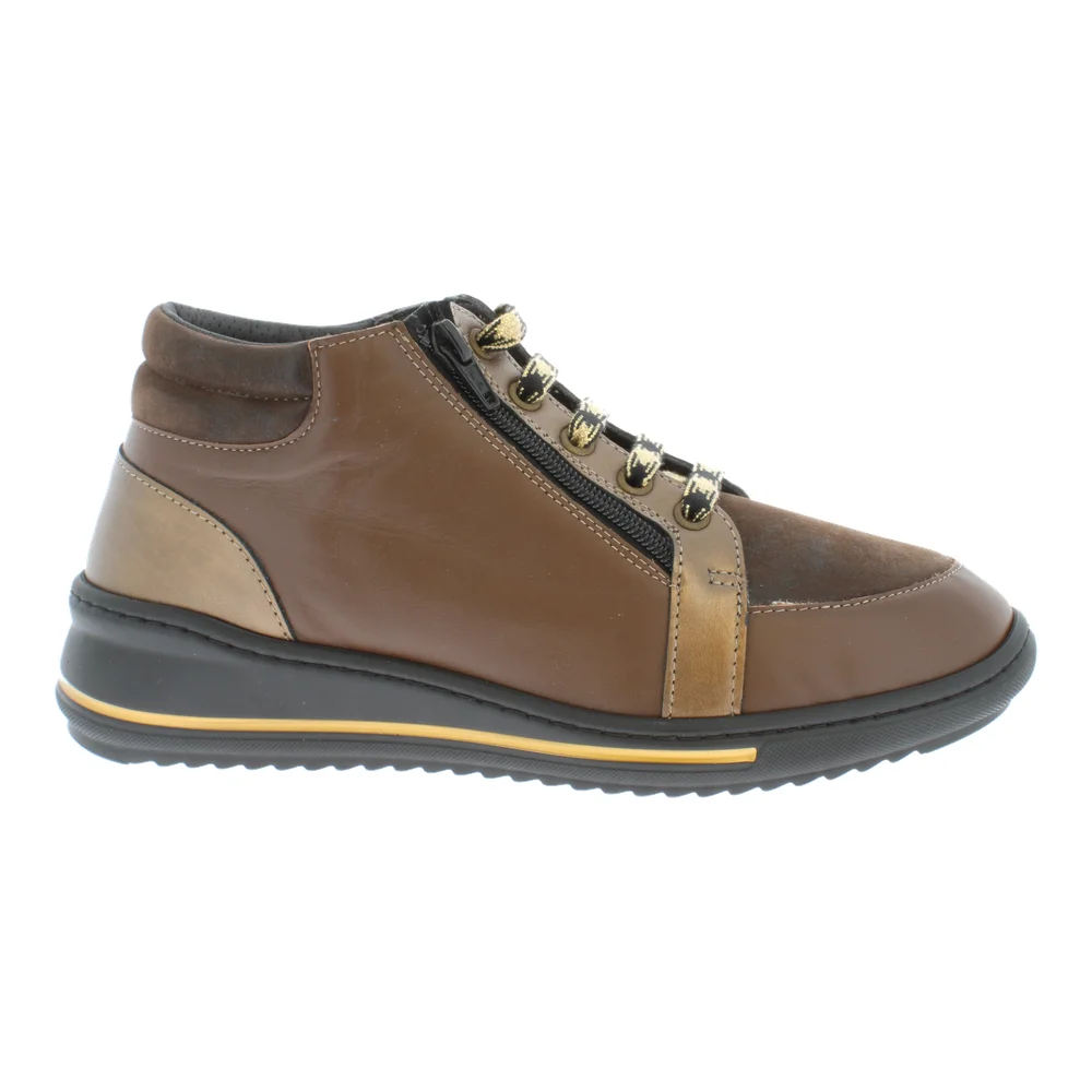 Les bottines confortables Shelby bronze de chez Podowell allient style et bien-être pour un usage quotidien. Grâce à leur combinaison de lacets et fermeture à glissière, elles s’enfilent facilement tout en offrant un ajustement précis. Leur dessus extensible et intercalaire amovible s’adaptent aux pieds sensibles ou déformés, tandis que la semelle antidérapante bi-densité garantit une marche stable sur tous les terrains. La doublure ON STEAM anti-transpirante et thermorégulatrice maintient les pieds frais et sains. Idéales pour les pieds larges et les porteurs de semelles orthopédiques.