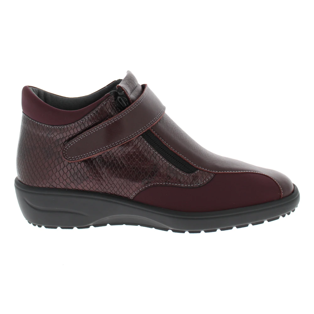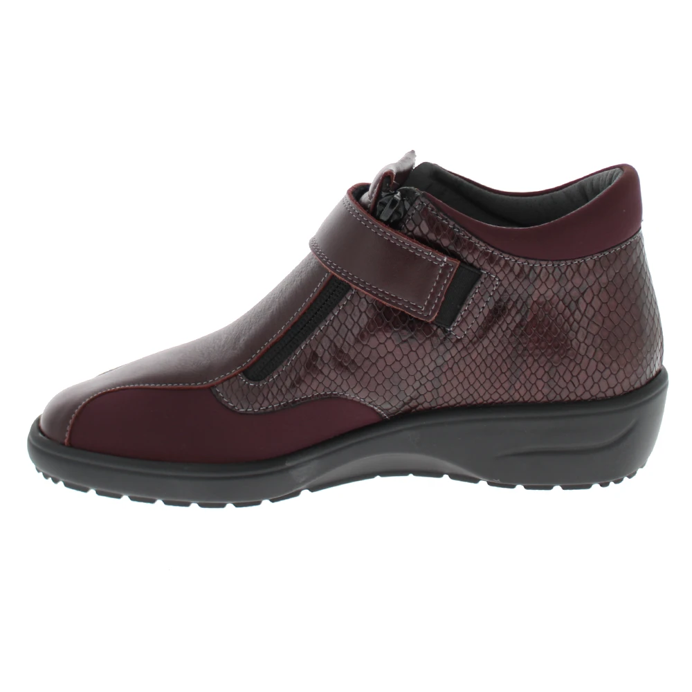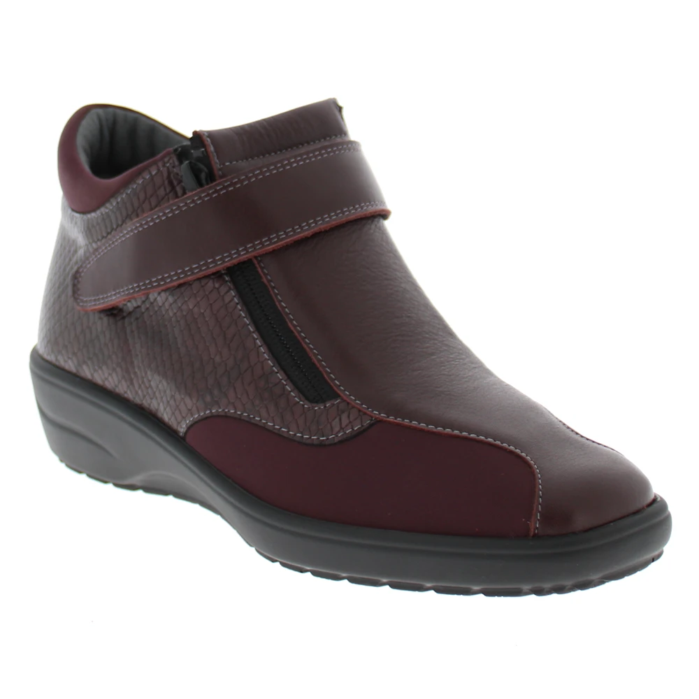 Cette chaussure confort pour femme est disponible en couleur bordeaux et de la pointure 36 à 42.