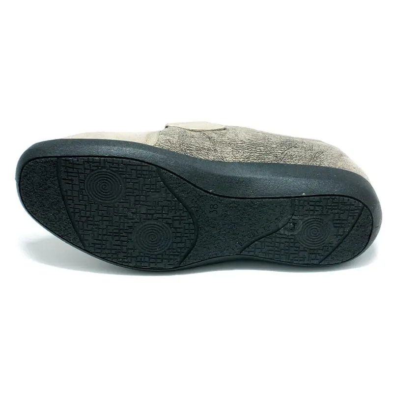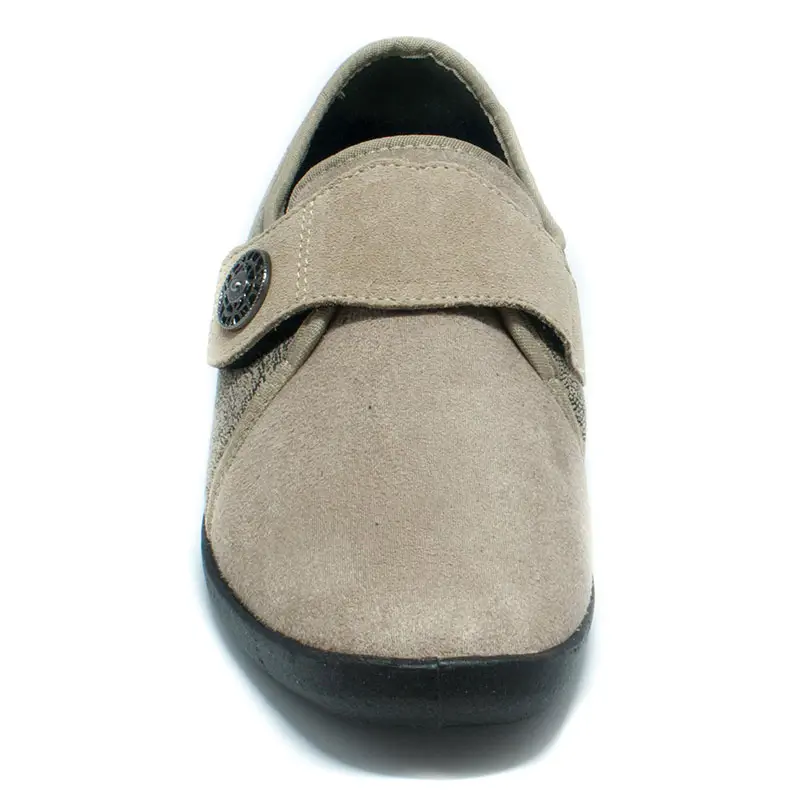 Ce chausson confortable pour femme est disponible en couleur beige et de la pointure 36 à 42.