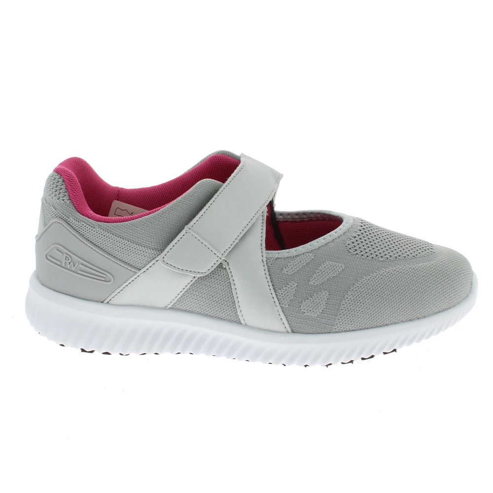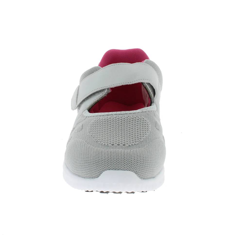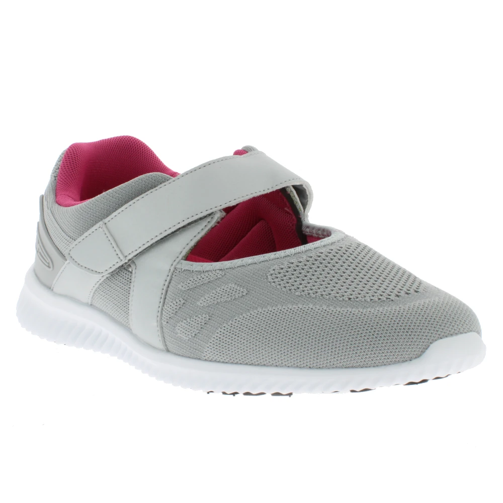 Cette chaussure orthopédique pour femme est disponible en couleur gris et de la pointure 36 à 42.