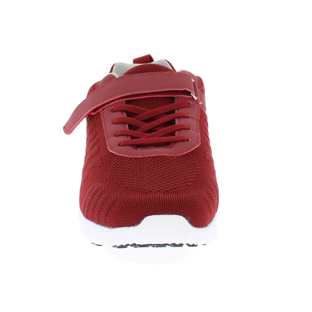 Cette chaussure orthopédique pour femme est disponible en couleur bordeaux et de la pointure 36 à 42.