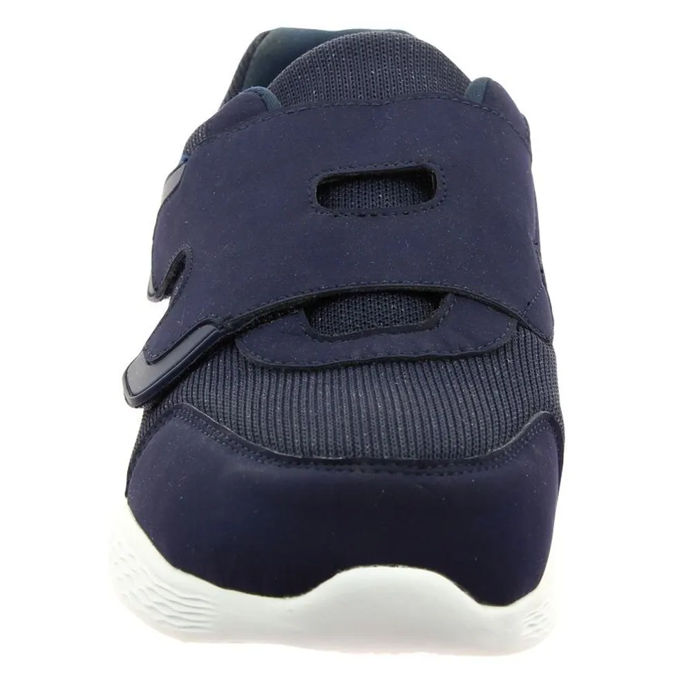Cette chaussure orthopédique pour homme est disponible en couleur marine et de la pointure 39 à 46.